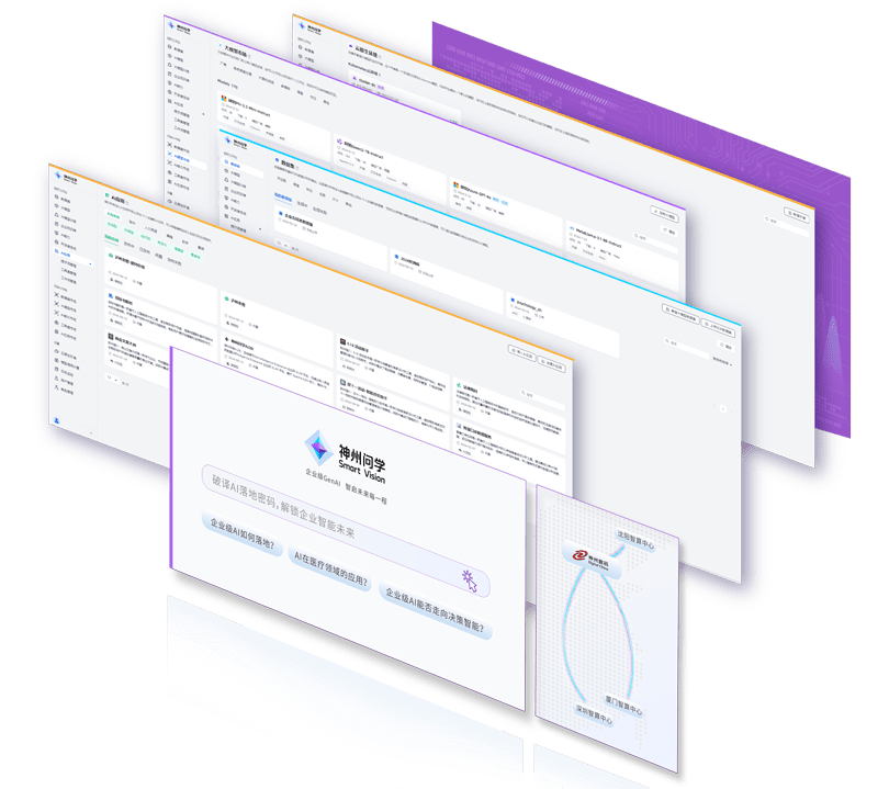 打通GenAI落地企业的算力、、、、模型、、、知识、、应用四大要素,,综合解决GenAI工程在选、、、、练、、、用、、、管四大环节的问题,,,,旨在为企业的数智化转型提供全套的GenAI智能应用工程流水线。。。。皇冠体育问学包括模型算力管理平台、、、企业私域知识管理平台、、AI应用工程平台三大模块,,,为企业提供更先进、、、更匹配的大模型,,,,解决了算力上信创适配、、融合调度、、、企业私域大模型高效推理训练问题,,,,同时解决了数据到知识的向量化以及场景应用的轻量化组装问题。。